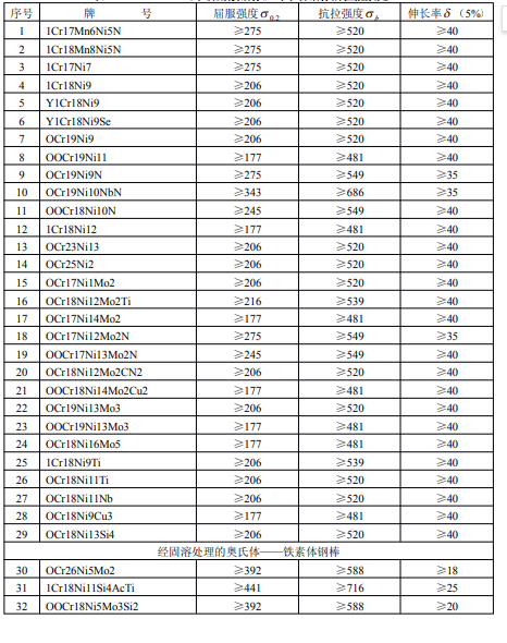不銹鋼棒強(qiáng)度設(shè)計(jì)值(經(jīng)固溶處理的奧氏體型鋼棒)