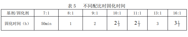 如 GE I GS3723密封膠固化時間見表 5。