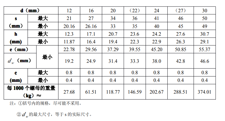 鋼結構用高強度大六角螺母的規(guī)格、尺寸及重量